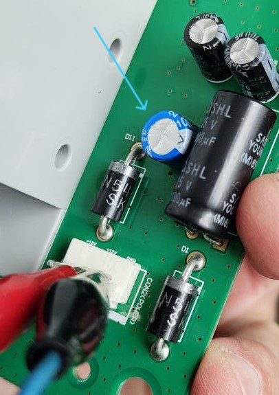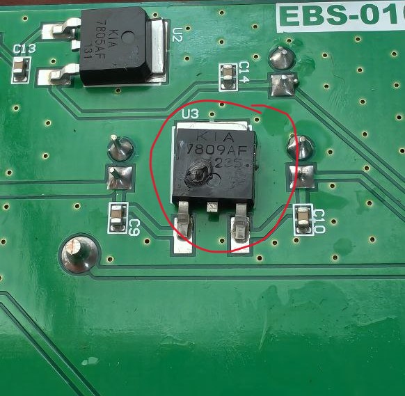 После вскрытия корпуса и проведения диагностики было выявлено, что причиной некорректной работы является выход из строя интегрального стабилизатора напряжения, а также деградация одного из конденсаторов в цепи питания датчика.